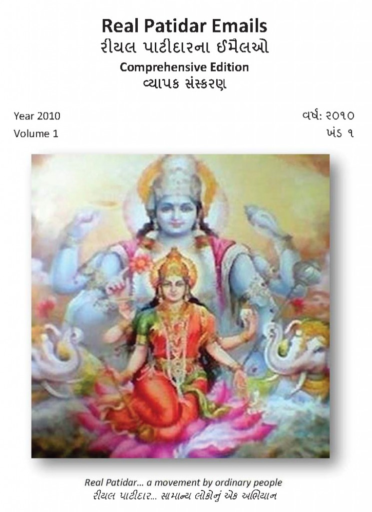 Update: 13-Jan-2017 – Changed links to archive.org 26-Apr-2011 || જય લક્ષ્મીનારાયણ || || Jay Laxminarayan || વર્ષ ૨૦૧૦માં સતપંથ વિષય ઉપર જાણકારી આપતા ઘણાં ઈમૈલો, રીયલ પાટીદાર દ્વારા મોકલવામાં આવ્યા હતા. લોકોએ એ ઈમૈલોને પસંદ કર્યા અને તેનું પ્રિન્ટ ઓઉટ કાઢીને પોતાની પાસે ફાઈલમાં પણ રાખવાના સમાચારો મળ્યા. During the year 2010, many emails on issue of Satpanth were sent Real Patidar. People liked such emails and reports of them taking print out and filing them are also heard. લોકોને એક સાથે એક જગ્યા વર્ષ ૨૦૧૦નાં ઈમૈલો મળે, જેથી તેમને સગવડ રહે, તે માટે વર્ષ ૨૦૧૦માં મોકલેલ ઈમલોનું એક વ્યકાપ સંસ્કરણ પુસ્તક બનાવામાં આવ્યું. (A Comprehensive Edition Book compiling all emails sent during the year 2010). For the benefit of people, all emails sent during the year 2010 are compiled in a book called. A “Comprehensive Edition” Book compiling all emails sent during the year 2010 was released. આ ઈમૈલ સાથે […]