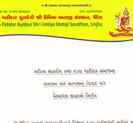 તા. ૨૫-૧૧-૨૦૧૭ જય લક્ષ્મીનારાયણ, સામાન્ય રીતે કેન્દ્રિય સમાજ તેમજ સનાતન ધર્મના વિરુદ્ધ અથવા સનાતની મોહીમ ઢીલી પડતા કામોની ટીકા આપણા રીયલ પાટીદાર વેબસાઈટ ઉપર થતી હોય છે. તે પ્રમાણે આથી આગાઉ પાટીદાર સંદેશ દ્વારા થયેલ સનાતની મોહીમને ઢીલી પાડતા લખાણોનું સવિસ્તાર મુદ્દાસર તમની ભૂલ બતાવતા લખાણ જનતા સામે મુકવામાં આવેલ હતાં. પણ આજે જ્યારે પાટીદાર સંદેશે સનાતન ધર્મ અને કેન્દ્રિય સમાજના તરફેણમાં લખ્યું છે, ત્યારે તેમની વાતને વધાવી લેવાની ફરજ પણ એટલીજ છે. ભલે અમુક બાબતોમાં હજી તેમની પાસે સમાજની જે આશા અને અપેક્ષા છે, તેના પર તે ખરા નથી ઉતર્યા, પણ શુરૂવાત કરવા બદ્દલ તેમને ધન્યવાદ પાઠવવો તો રહ્યોજ. હાલના નવેમ્બર ૨૦૧૭ના અંકના તંત્રી લેખમાં પાટીદાર સંદેશના તંત્રીઓએ જે ઉમિયા માતાજી ઊંઝાએ તા. ૦૮-૧૦-૨૦૧૭ ના સતપંથ વિવાદ અંગે આપેલ નિર્ણયને વધાવી તેનું સાચા Spirit (ભાવના) થી પાલન કરવા સમસ્ત કચ્છ કડવા પાટીદાર જ્ઞાતિને જે આવાહન તંત્રીશ્રીઓ તેમના તંત્રો લેખમાં (તંત્રી લેખની નકલ અહીં જોડેલ છે) કરેલ છે, તે માટે […]