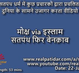તા. 20-Jul-2016 પીરાણા સતપંથ વિષે કોલ્હાપુર સ્થિત કરવીર પીઠના શંકરાચાર્યની ગાદીએ ઘણા વર્ષો સુધી બહુજ ઊંડાણ પૂર્વક કામ કરેલ છે. આદિ શંકરાચાર્ય દ્વારા સ્થાપિત મૂળ ચાર પીઠોમાંના એક શૃંગેરી પીઠની આ પીઠ એટલે કે કરવીર પીઠ એક અધિકૃત શાખા છે. મહારાષ્ટ્રમાં લેવા પાટીદાર જ્ઞાતિ પણ આ પીરાણા સતપંથમાં ફસાયેલ છે. તે અંગે વર્ષ ૧૯૩૧માં જળગાવની આસપાસ રહેતા લેવા પાટીદાર સમાજના અમુક આગેવાનોએ પરમ પૂજ્ય શંકરાચાર્યજીનો સંપર્ક કર્યો અને ત્યાર બાદ શંકરાચાર્યજીએ ગહન અભ્યાસ કર્યો તેમજ ધર્મના વિદ્વાનો સાથે ચર્ચા કરી ને એવો નિષ્કર્ષ આપ્યો કે પીરાણા સતપંથ ધર્મ એ હિંદુ ધર્મનો ભાગ નથી, પીરાણા સતપંથ ધર્મ એ “વેદબાહ્ય” (એટલે કે વેદ પ્રમાણે નથી) છે, તેવું પ્રમાણિત કરતો પત્ર આપ્યો. (આ પત્ર મરાઠી ભાષામાં છે.) હાલની સતપંથ દ્વારા કરવામાં આવેલ હાલચાલ જેમાં સતપંથના પ્રચારક શ્રી જનાર્ધન મહારાજને મહામંડલેશ્વરની પદવી આપવામાં આવેલ હકીકત, તેમજ સતપંથને કુંભમેળામાં આપવામાં આવેલ સ્થાનની હકીકતને ધ્યાનમાં રાખીને હાલના પરમ પૂજ્ય શંકરાચાર્યજીએ વિષયને ફરીથી હાથમાં લીધો અને ફરીથી […]